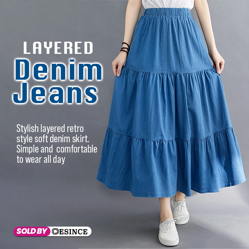 ✅ Layered skirt ➡️Stylish layered retro style denim skirt. Simple and comfortable