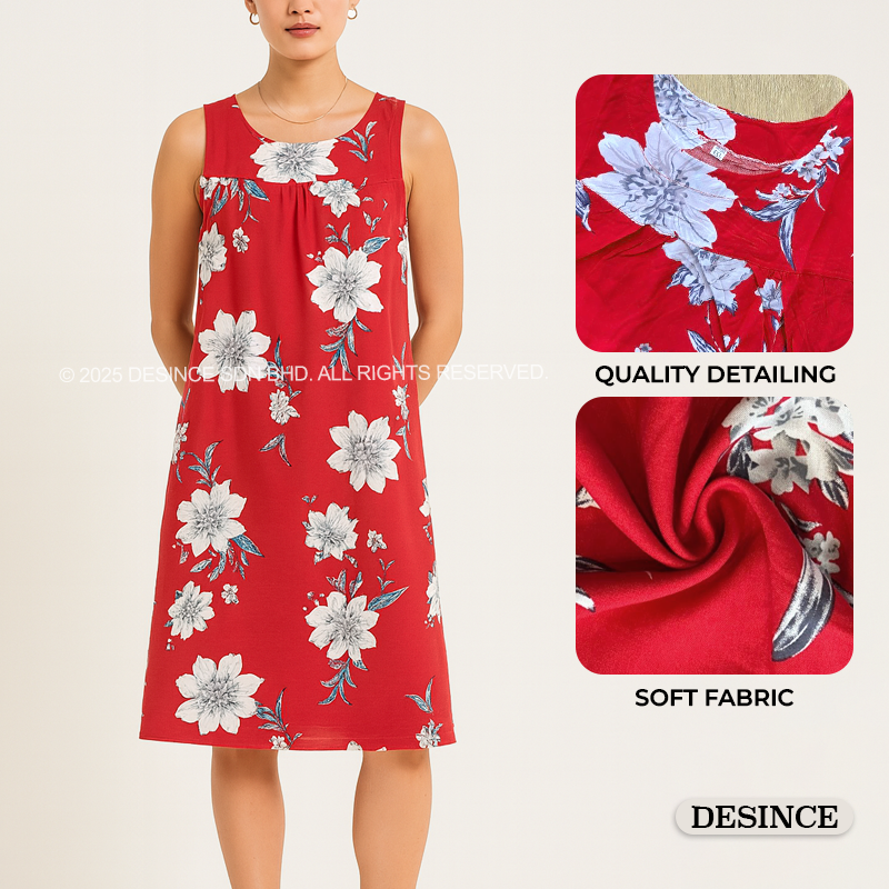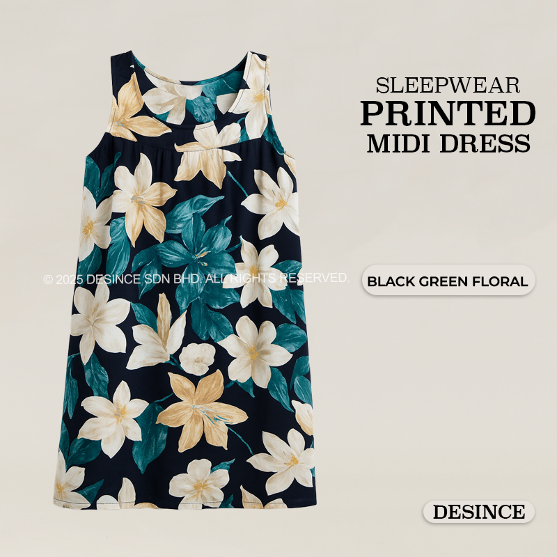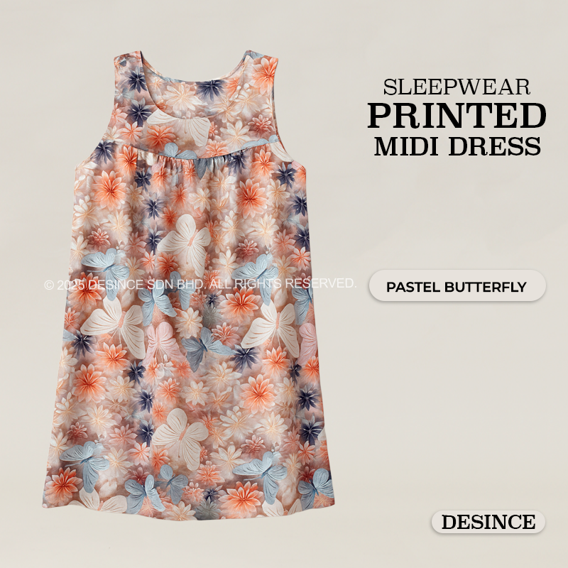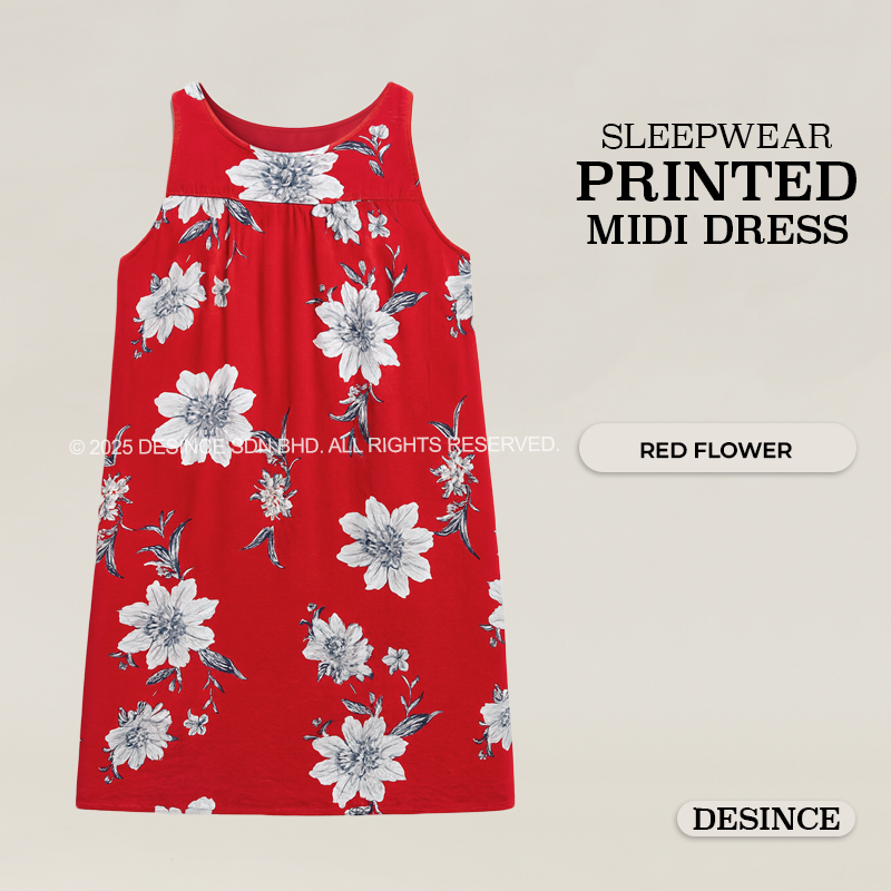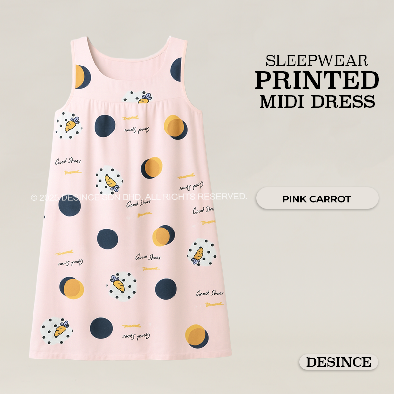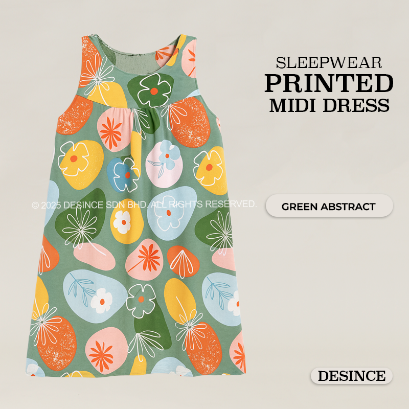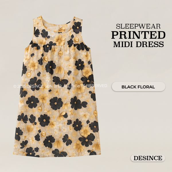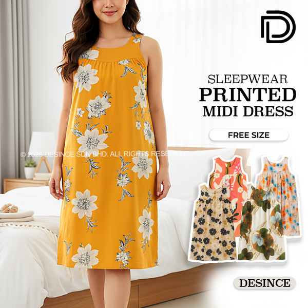 WW 059 WOMEN FREE SIZE SLEEPWEAR PRINTED MIDI DRESS
